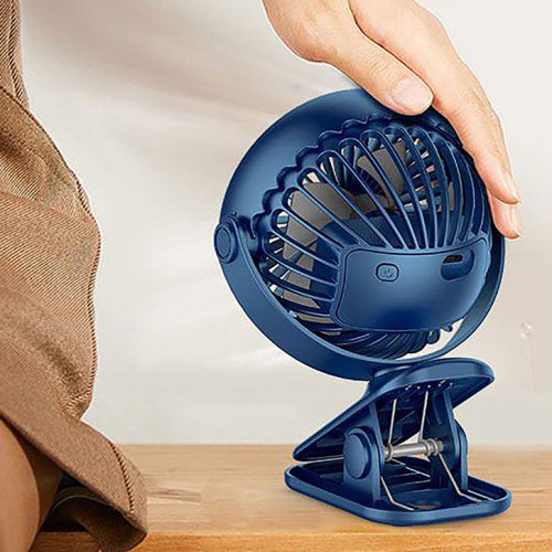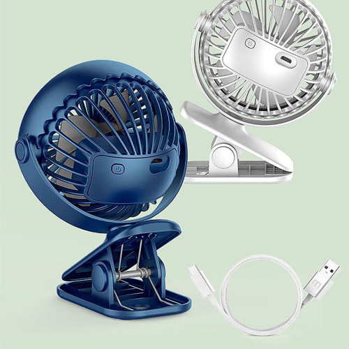 [608906] Mini 360° Portable Clip On Fan W/Light (Rechargeable) - Blue