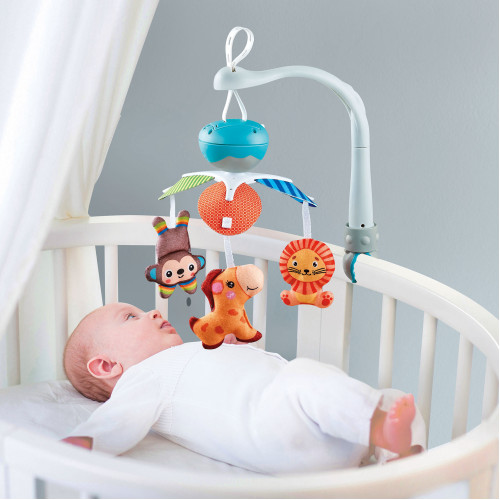 A nursery just isn't complete without a baby mobile hanging overhead the baby crib. The sweet songs and visual stimulation serve as a soothing activity for baby, aiding in growth and development. Hang one above baby's crib to provide visual and audio stimulation. No matter what your baby likes, a mobile will surely prompt a smile. Baby's visual attention is expanded since the hanging objects move slower and is easier to follow.