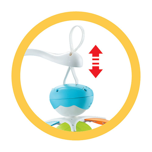 - ON: 30 min of continuous music will start playing and the mobile will start turning - All 5 tunes if approximately 1 min each will play consecutively. At the end of 30 min of play, the mobile will turn itself off.