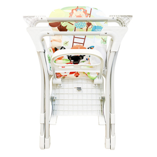 - Removable wide feeding tray with development toys - Additional serving tray for easy cleaning