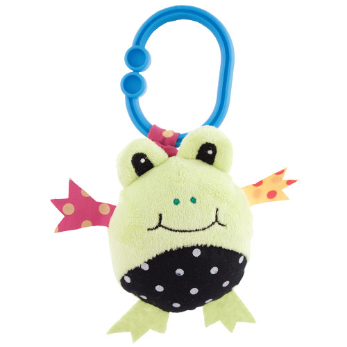 Frog ziggles back up when pulled down. Attachable link for take-along play. Bold colors and patterns provide visual stimulation.